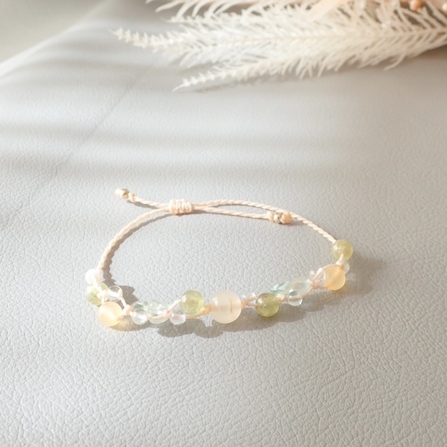春色アラゴナイトとグリーンガーネット 心をやさしく整える天然石ブレスレット