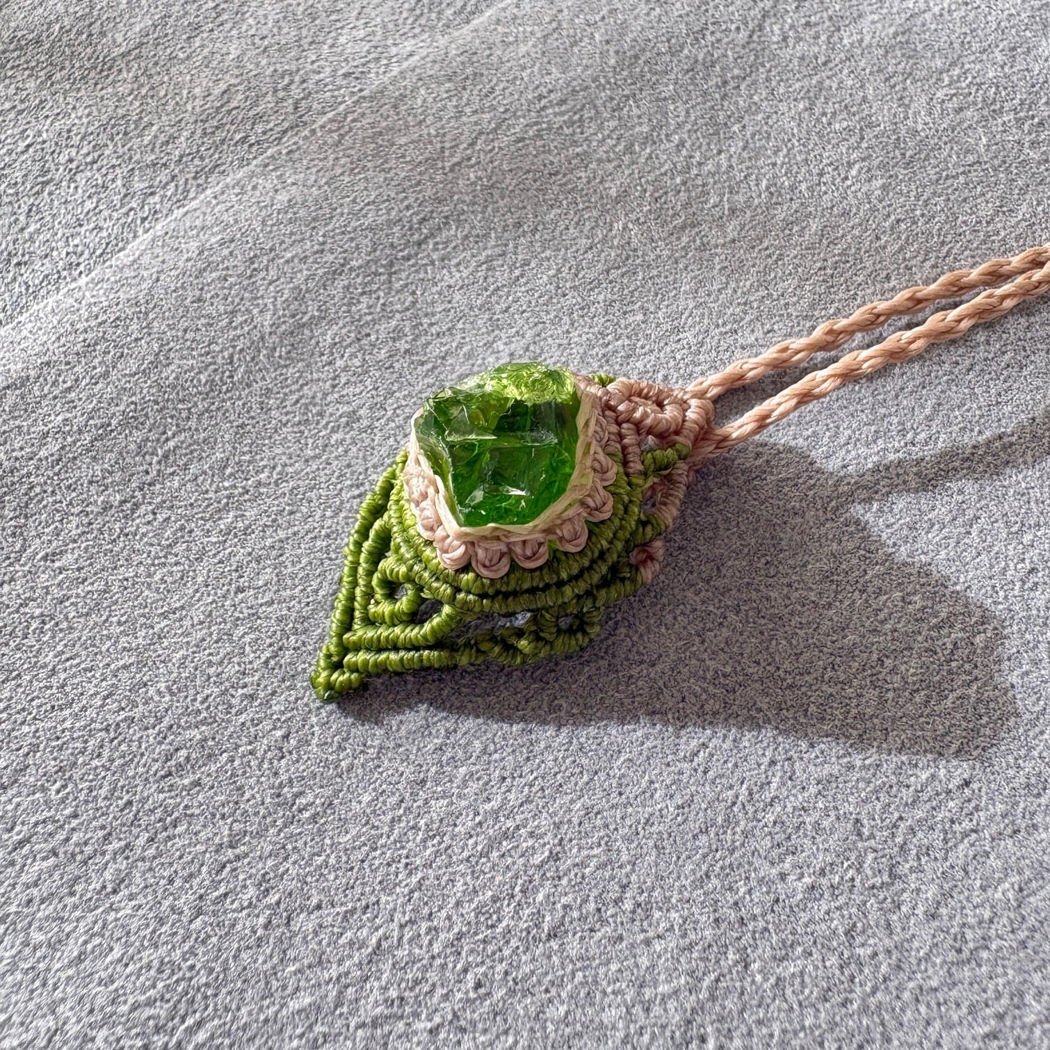静かなグリーンのアンダラクリスタルペンダント|一点もの