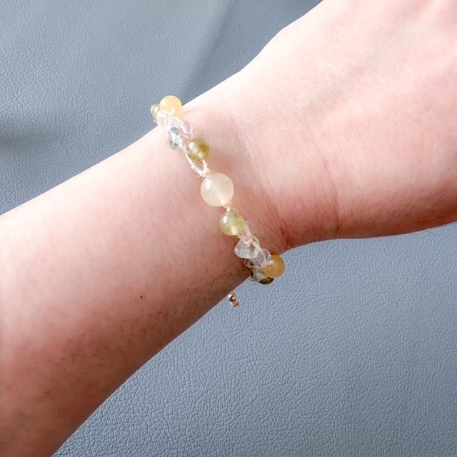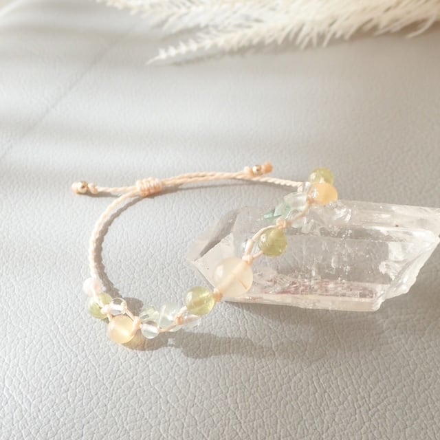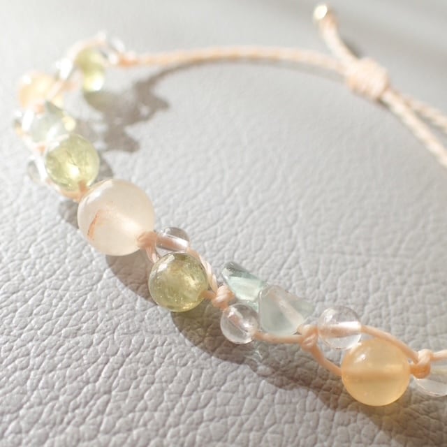 春の光を思わせる、やさしい色合いの天然石ブレスレットです。