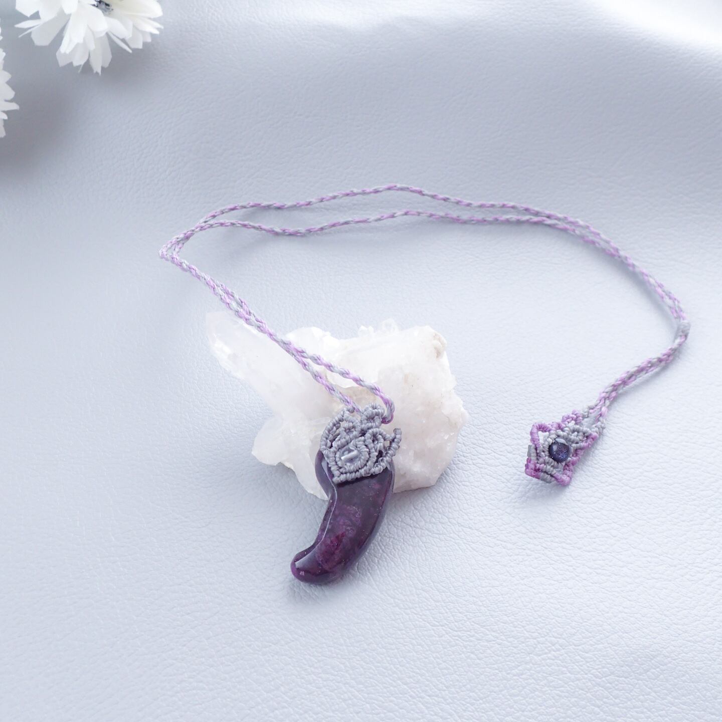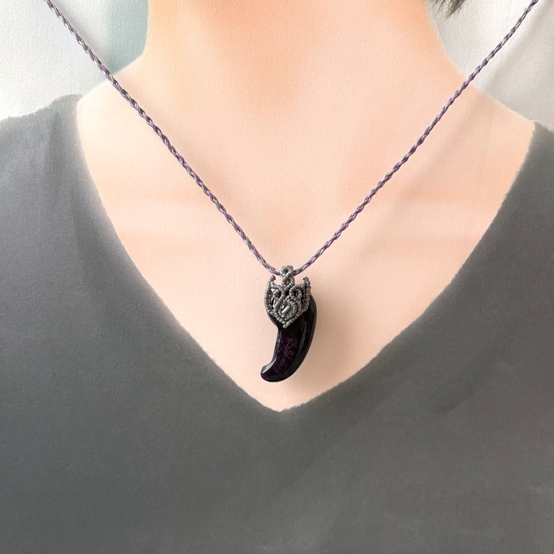 スギライト 勾玉ネックレス|希少オールドストック天然石・マクラメ編み・一点もの