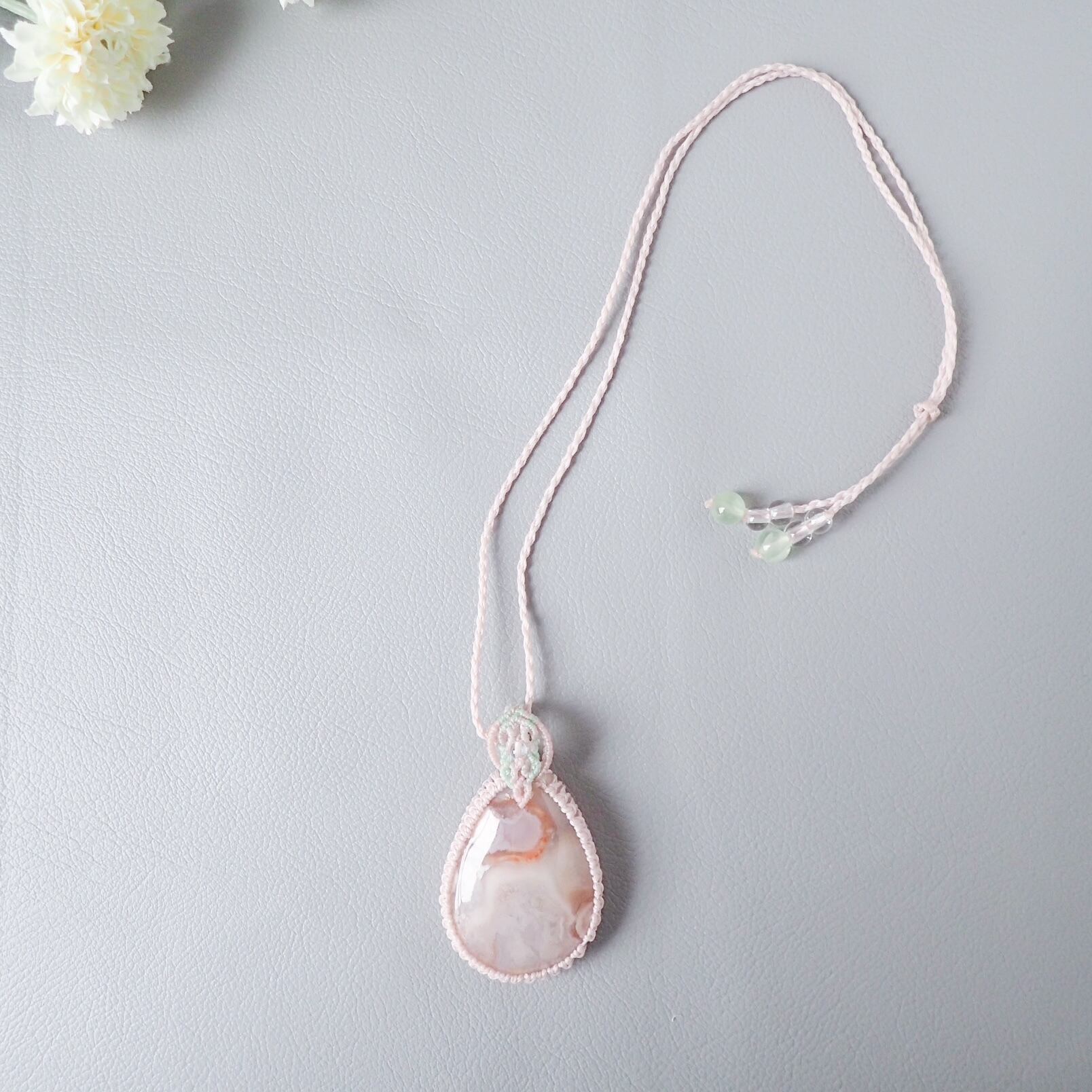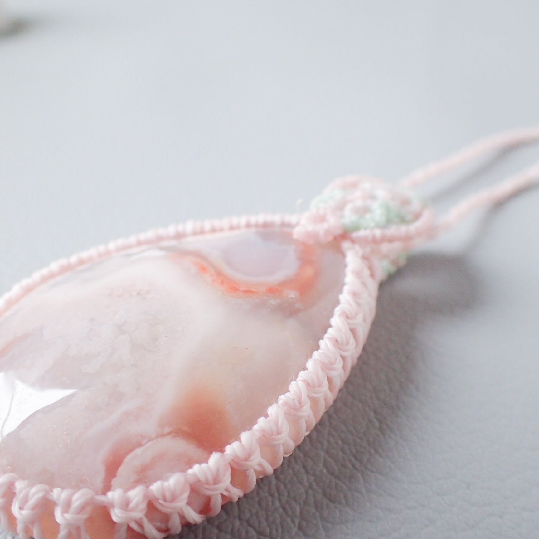 大粒の桜瑪瑙を使用したマクラメペンダントです。