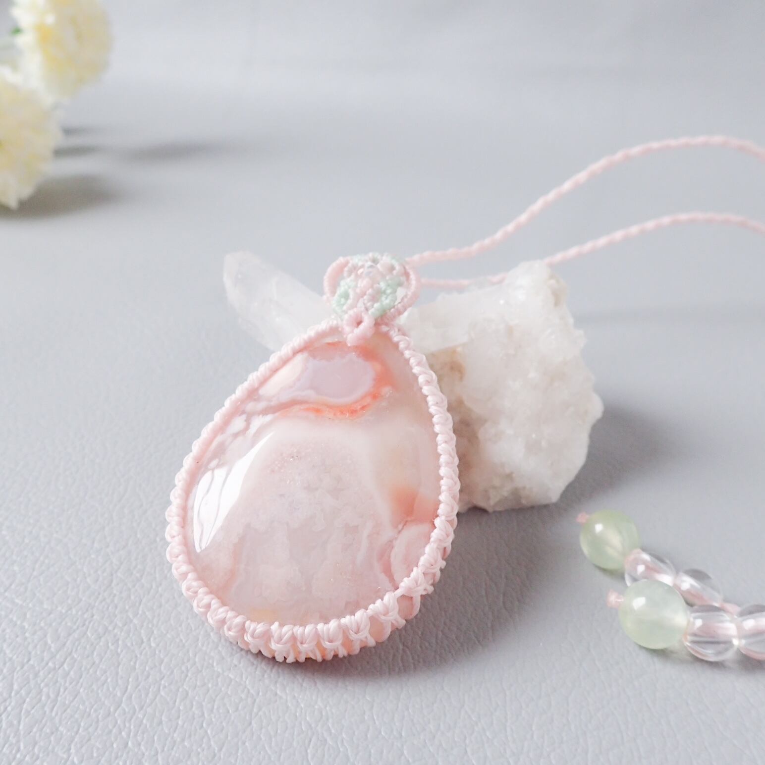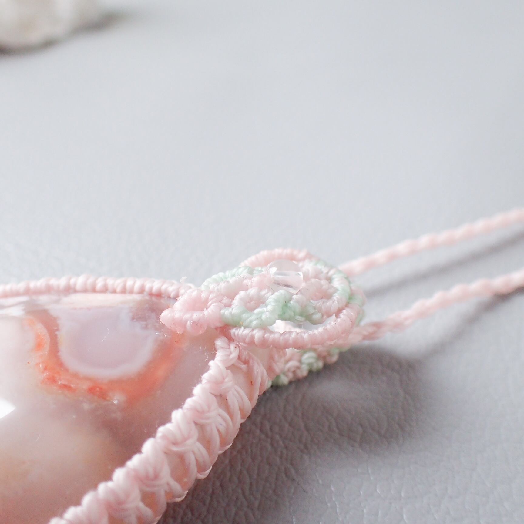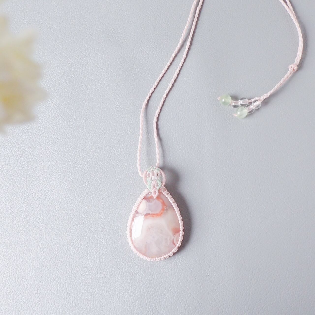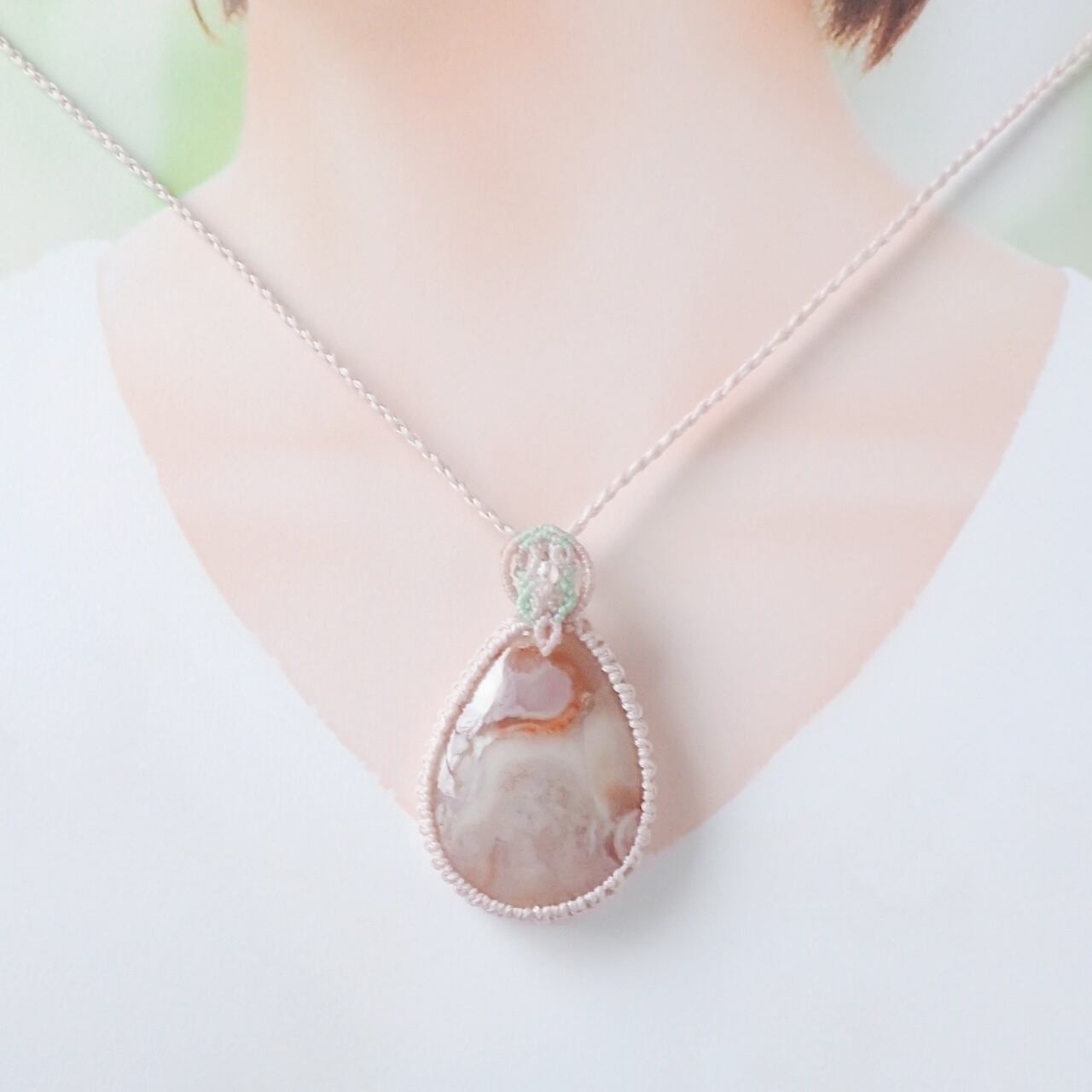 春を纏う雫*大粒 桜瑪瑙のマクラメペンダント|一点もの